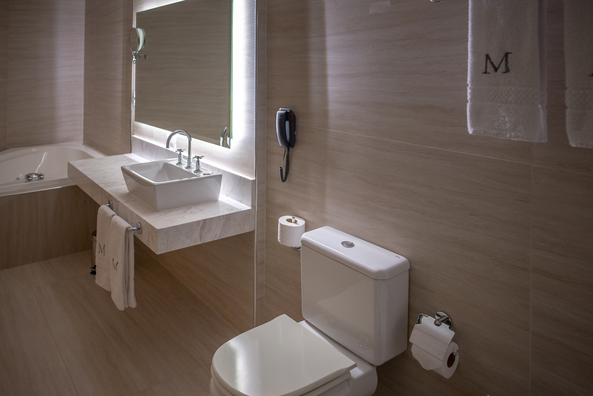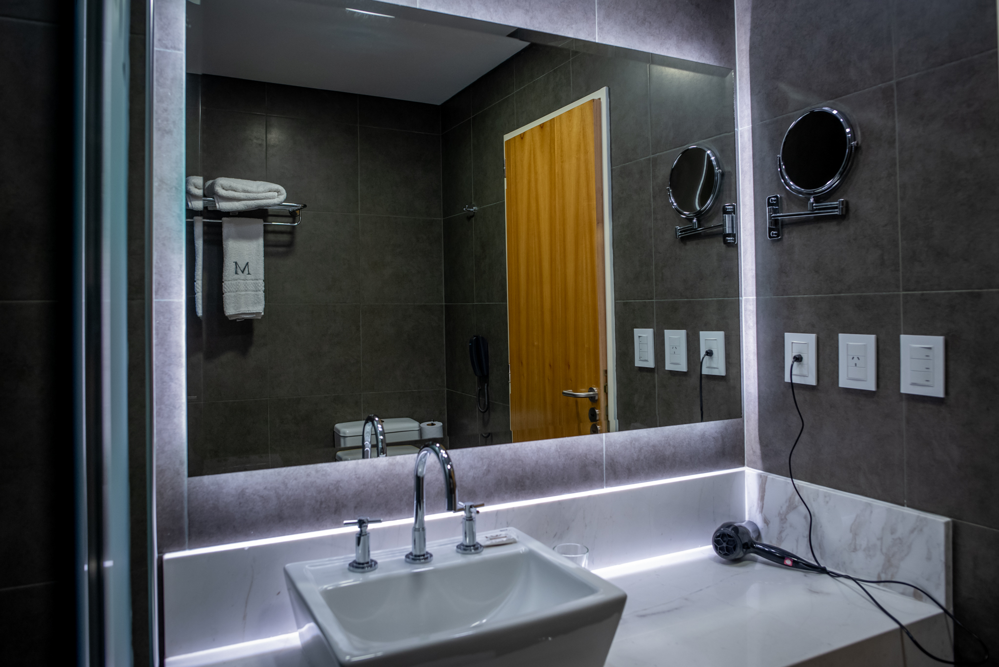 De gran amplitud, ofrece dos áreas diferenciadas que garantizan privacidad y armonía. La increíble vista panorámica a la rotonda principal de la ciudad y el espacio de jacuzzi, harán que vivas una experiencia a puro placer y confort.Cálida y cómoda para tu estadía. Equipada con Aire acondicionado, frigobar, TV, WIFI, y mobiliario de primer nivel.